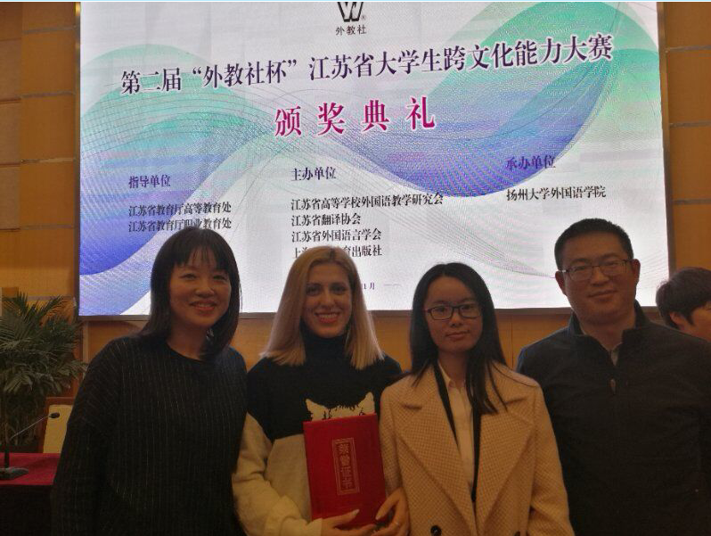 2019年11月20日,第二届“外教社杯”江苏省大学生跨文化能力大赛在扬州大学举行,ylzzcom永利总站师生取得佳绩。吴新兰老师指导的杜晨岚同学荣获日语组一等奖,刘涓涓老师指导的Soro Davlatova(来自塔吉克斯坦)荣获留学生组一等奖,殷健老师指导的俞柯荣获本科组二等奖。