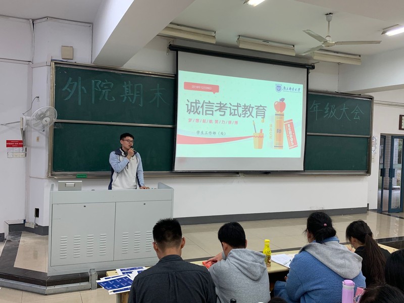 在考风考纪方面,谭鑫老师先叮嘱同学关于四级考试的注意事项。如带好三证,耳机的使用等;然后又宣读了刑法对考试作弊的相关处罚,告诫同学禁止作弊。关于期末考试,他也细心地通知了许多注意事项,规范了同学们的考场行为。