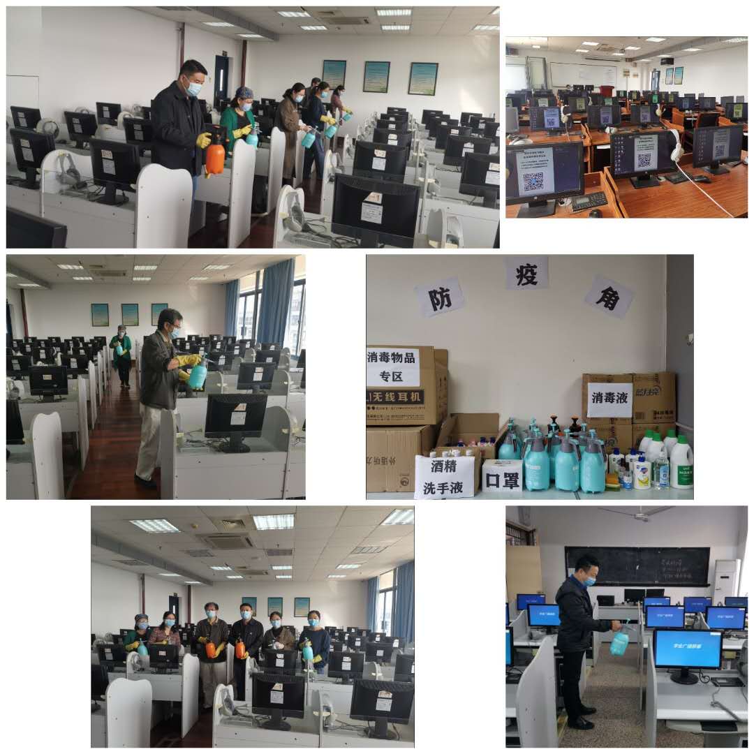 臧院长充分肯定了外语教学实验中心的工作,并与大家一起进行了消杀工作。