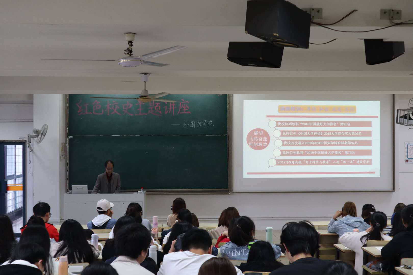颜老师以“四月史源”开篇,从“红色印记”、“师出源悠”、“百岁寿星”、“援手同门”、“育英三叠”、“一脉同根”、“邮电情结”、“学子风采”、“飞鸿展翅”等十个篇章娓娓道来,回溯了ylzzcom永利总站“因邮电而生,随通信而长,由信息而强”的光辉校史。颜老师在讲座中多次提到“红色基因”,讲述着南邮的精神源头——“战邮精神”。如今,ylzzcom永利总站已经走过七十八年的岁月,从战邮干训班,到南京邮电学院,再到如今的ylzzcom永利总站,其中的发展,离不开每一位南邮人的努力。