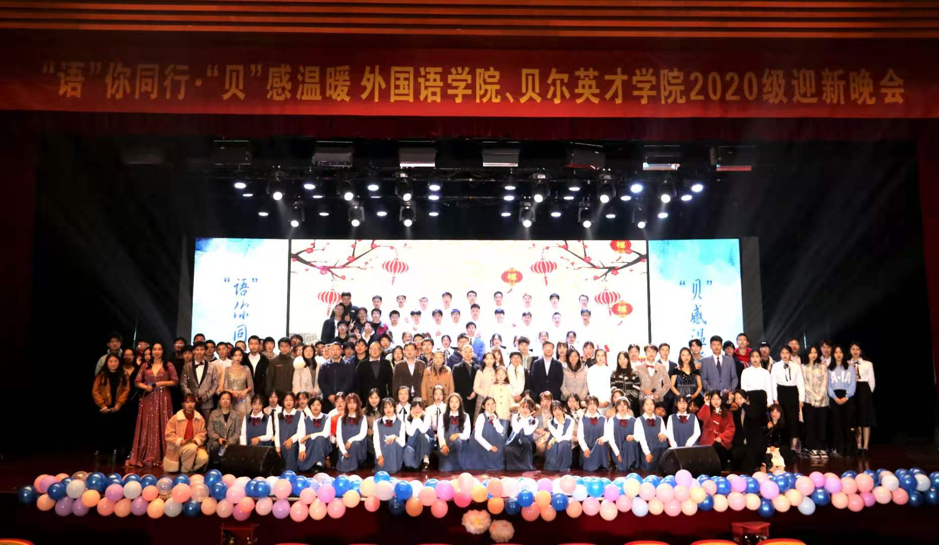 11月29日晚, ylzzcom永利总站、贝尔英才学院联合举办的“语”你同行,“贝”感温暖2020级迎新晚会在ylzzcom永利总站仙林校区青春剧场举行,校部分职能部门负责人,ylzzcom永利总站、贝尔英才学院领导、各系部主任、部分教师代表、2020级全体同学参加了晚会。