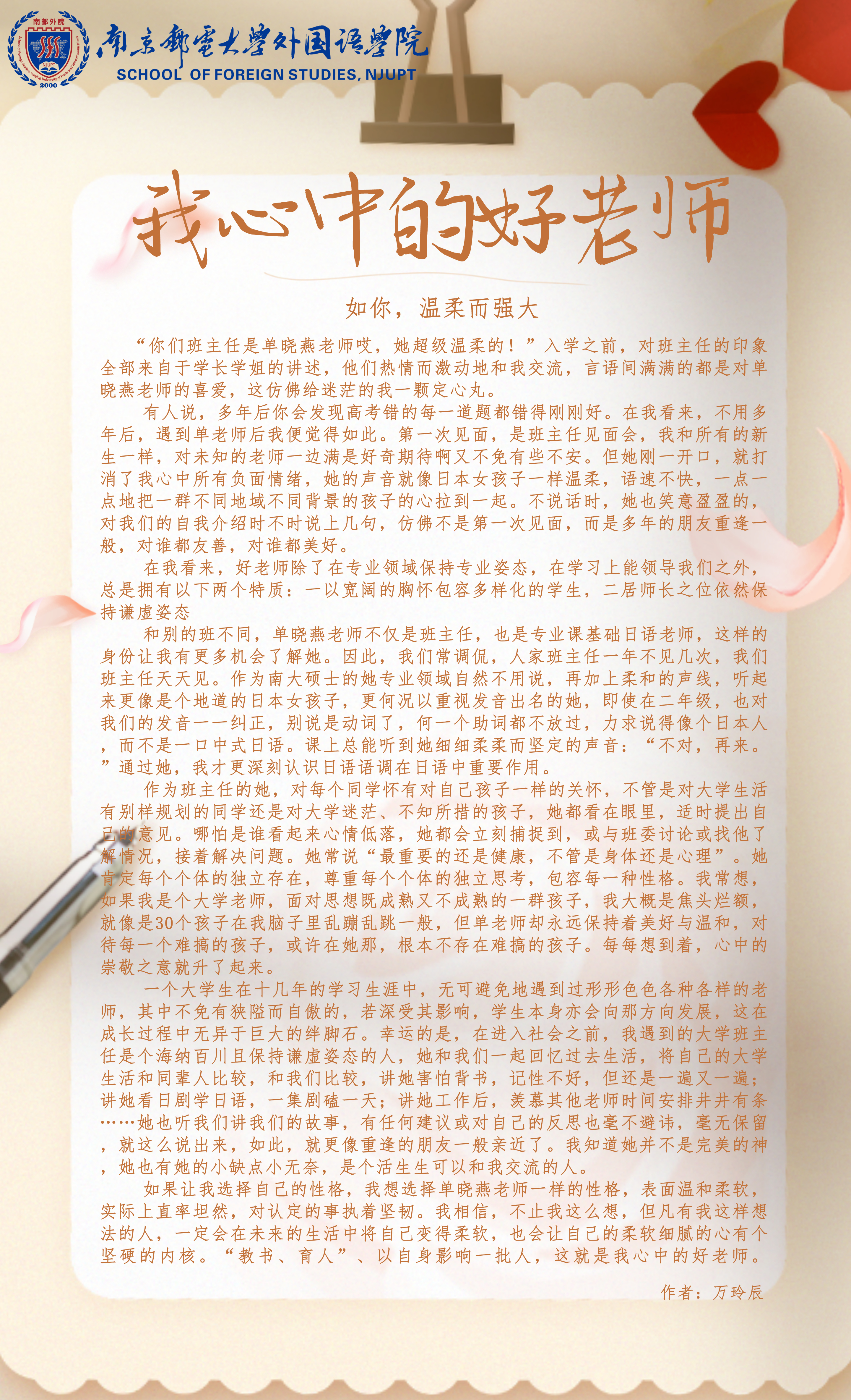 “我心中的好老师”优秀征文选送(七)