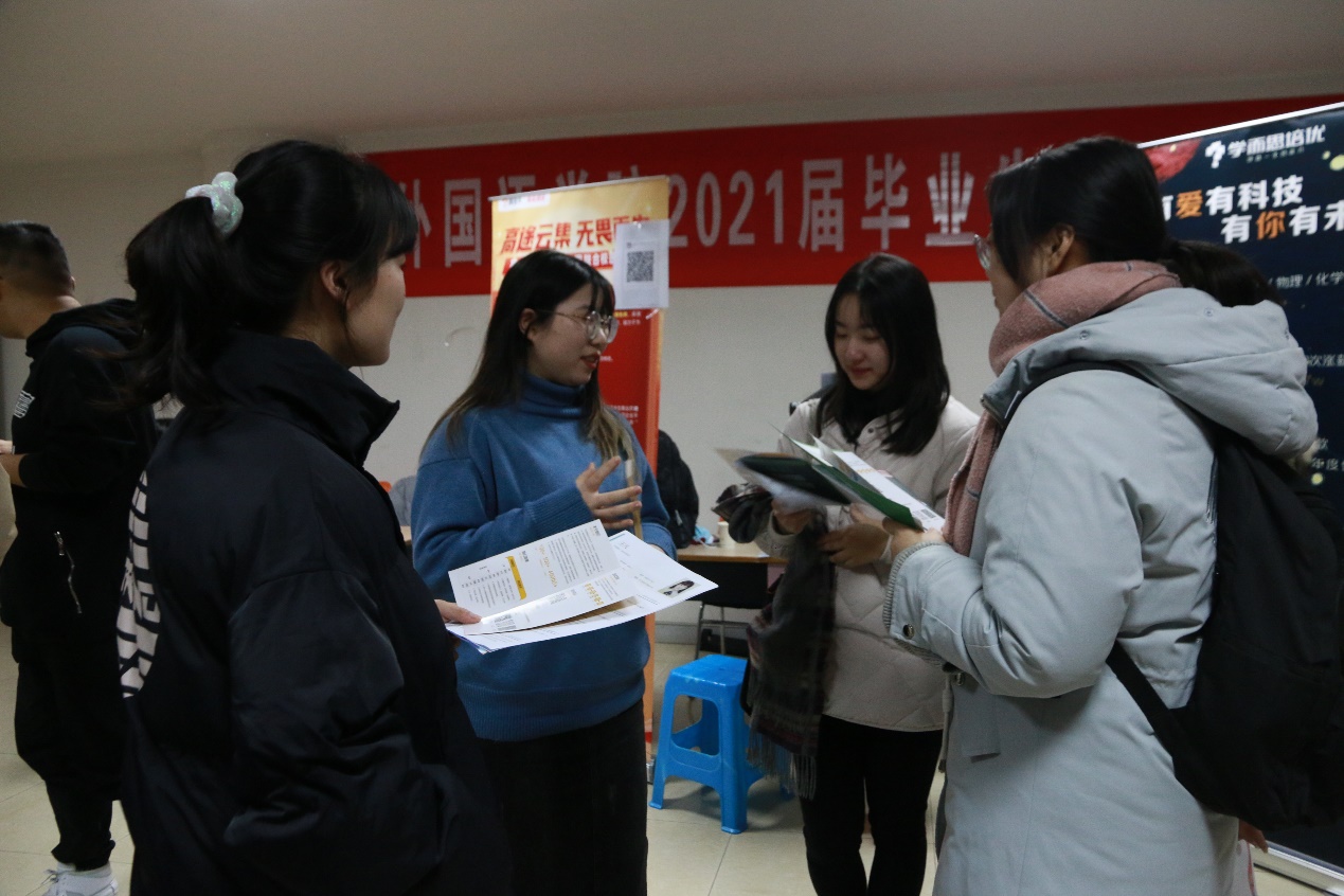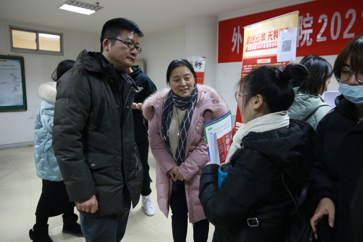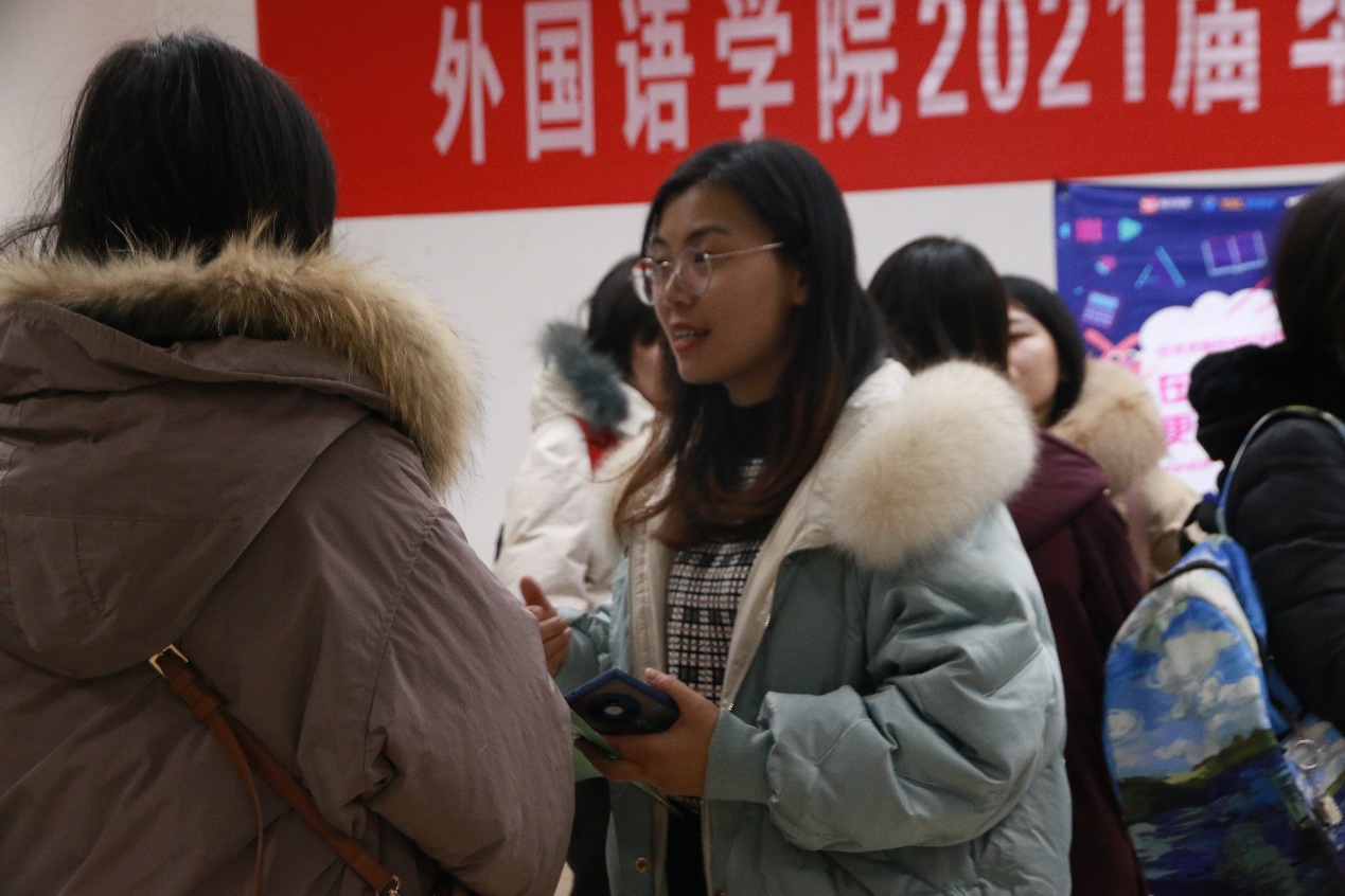 为积极搭建毕业生与用人单位双向交流平台,拓宽学生就业渠道,积极做好ylzzcom永利总站2021届毕业生就业工作,1月8日晚,ylzzcom永利总站在圆楼505、521室举办2021届毕业生专场招聘会。来自ylzzcom永利总站英语、翻译和日语专业的200余名毕业班同学参加了招聘会。ylzzcom永利总站党委书记陈晓波、院长袁周敏、党委副书记徐欣娅、2017级辅导员高艳丽来到招聘会现场,与毕业生和招聘单位开展交流,了解企业人才需求状况和毕业生求职意向。