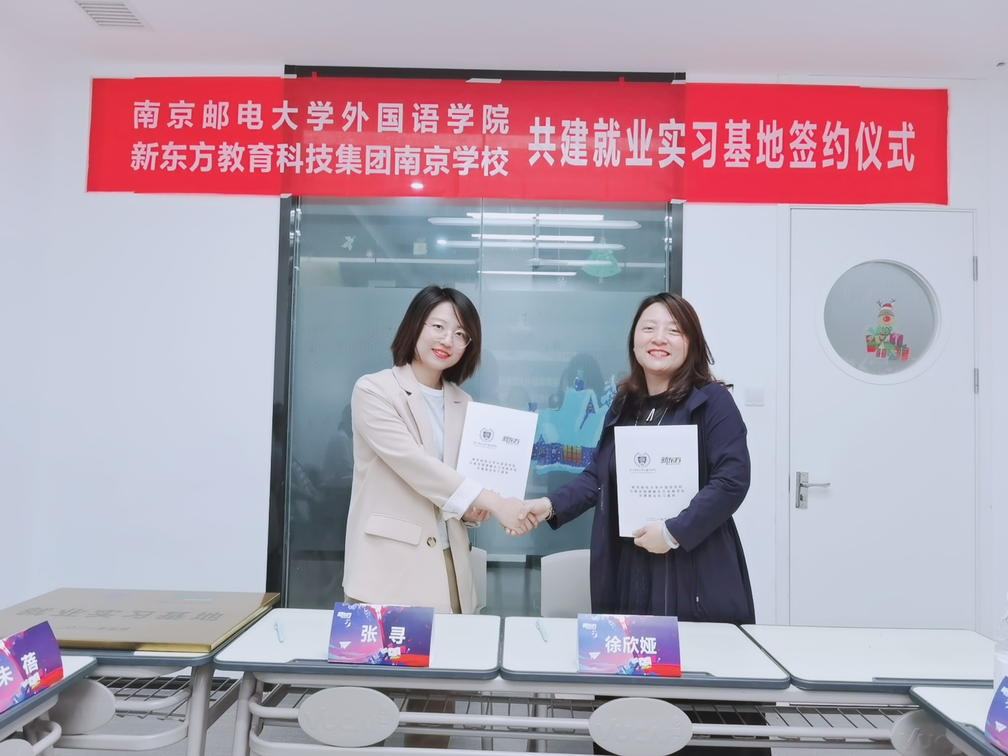 在经过主持人开场、新东方企业介绍、校友热情分享、校企合作方案积极探讨、校企签约授牌仪式,以及参观校区合影留念后,ylzzcom永利总站,ylzzcom永利线路检测中心与新东方教育科技集团南京学校正式一齐迈向共建就业实习基地的友好合作。