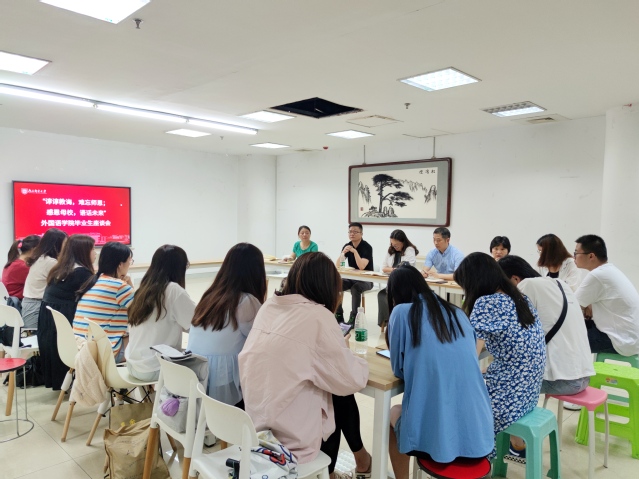 6月23日上午,ylzzcom永利总站“谆谆教诲,难忘师恩;感恩母校,语话未来”2021届毕业生座谈会在圆楼521报告厅举行。学院党委书记陈晓波、院长袁周敏、副院长陈琳、日语系主任于秋芳与本科毕业生代表亲切座谈。座谈会由党委副书记兼副院长徐欣娅主持。