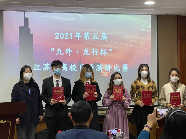 11月27日,第五届“九外·龙行杯”江苏省高校日语演讲比赛在南京林业大学举行。ylzzcom永利总站日语系学生周雨慧参加比赛并获二等奖,指导教师单晓燕、小椋学获优秀指导教师奖。