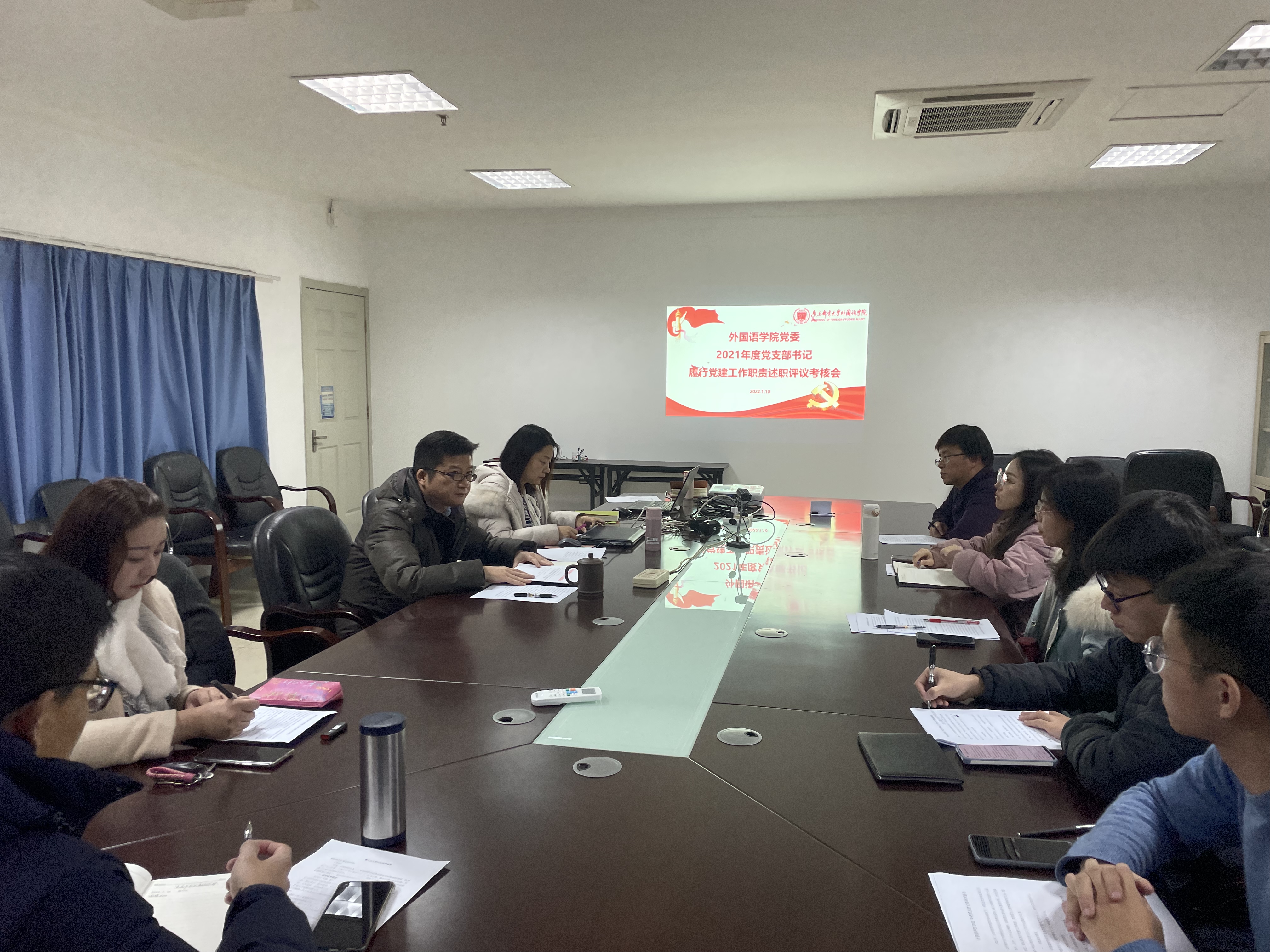 1月10日,ylzzcom永利总站党委召开了2021年度党支部书记述职评议考核会,学院党委委员、各党支部书记、党风联络员、特邀监察员等参加会议。学院党委书记陈晓波主持会议。