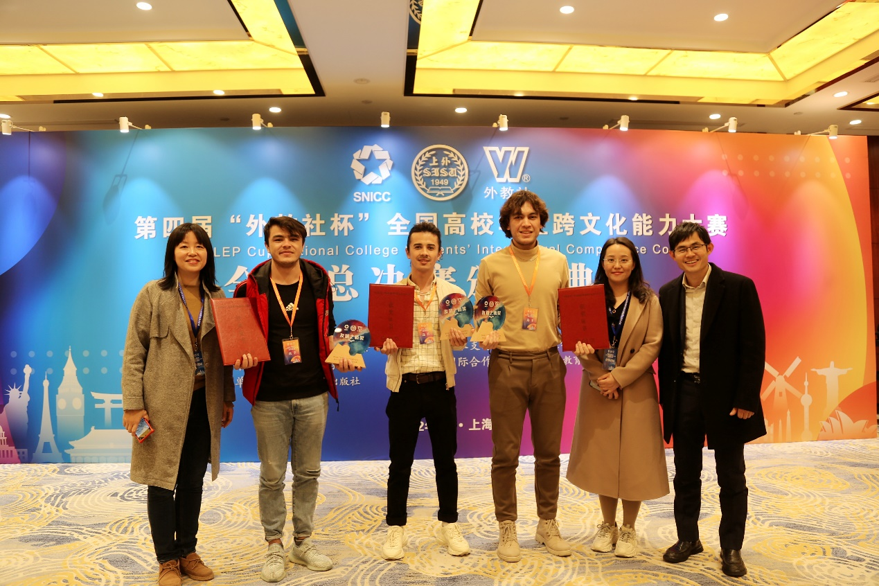 在ylzzcom永利总站指导教师刘涓涓、王竞雄老师,以及海外教育学院吴小海老师的精心指导下,我校国际学生代表队在全国总决赛中荣获友谊之桥奖。上海外国语大学国际生代表队荣获未来中国通奖。我校参赛团队由三名乌兹别克斯坦籍学生Sobirjon Ibragimov, Nodir Izzatullaev和Doniyor Jumaniyazov组成,他们于去年10月组队参加江苏省赛,获得江苏省国际学生组第一名,并成为江苏省唯一获得国赛资格的国际生参赛队。