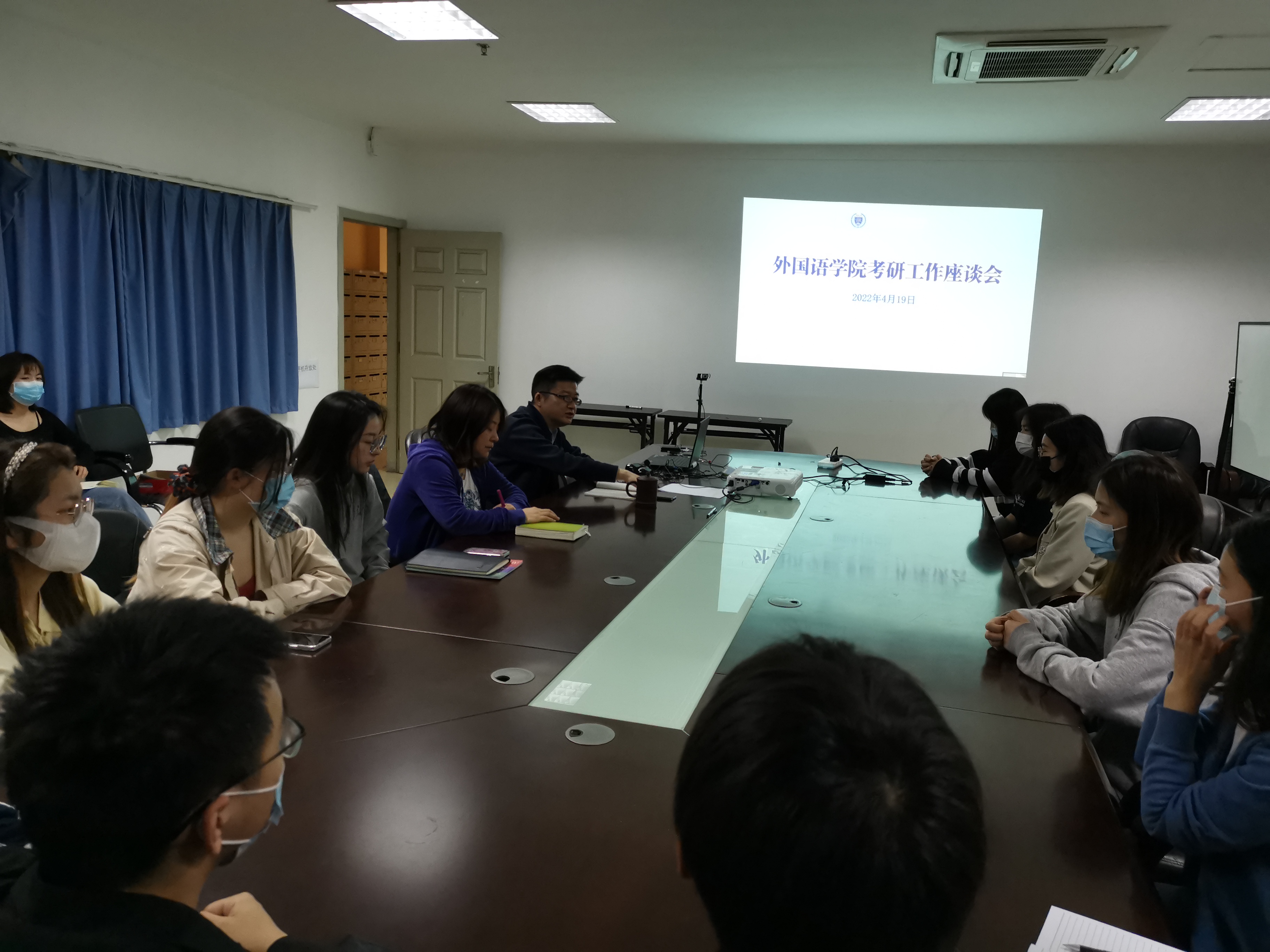 4月19日晚,ylzzcom永利总站召开考研工作座谈会。会议由院党委书记陈晓波主持,院长袁周敏、副书记兼副院长徐欣娅、副院长吴建、副院长陈琳、各专业系部主任、教工党支部书记、辅导员及2022届成功考研的12位毕业生代表通过线上线下结合的方式参加此次座谈会。
