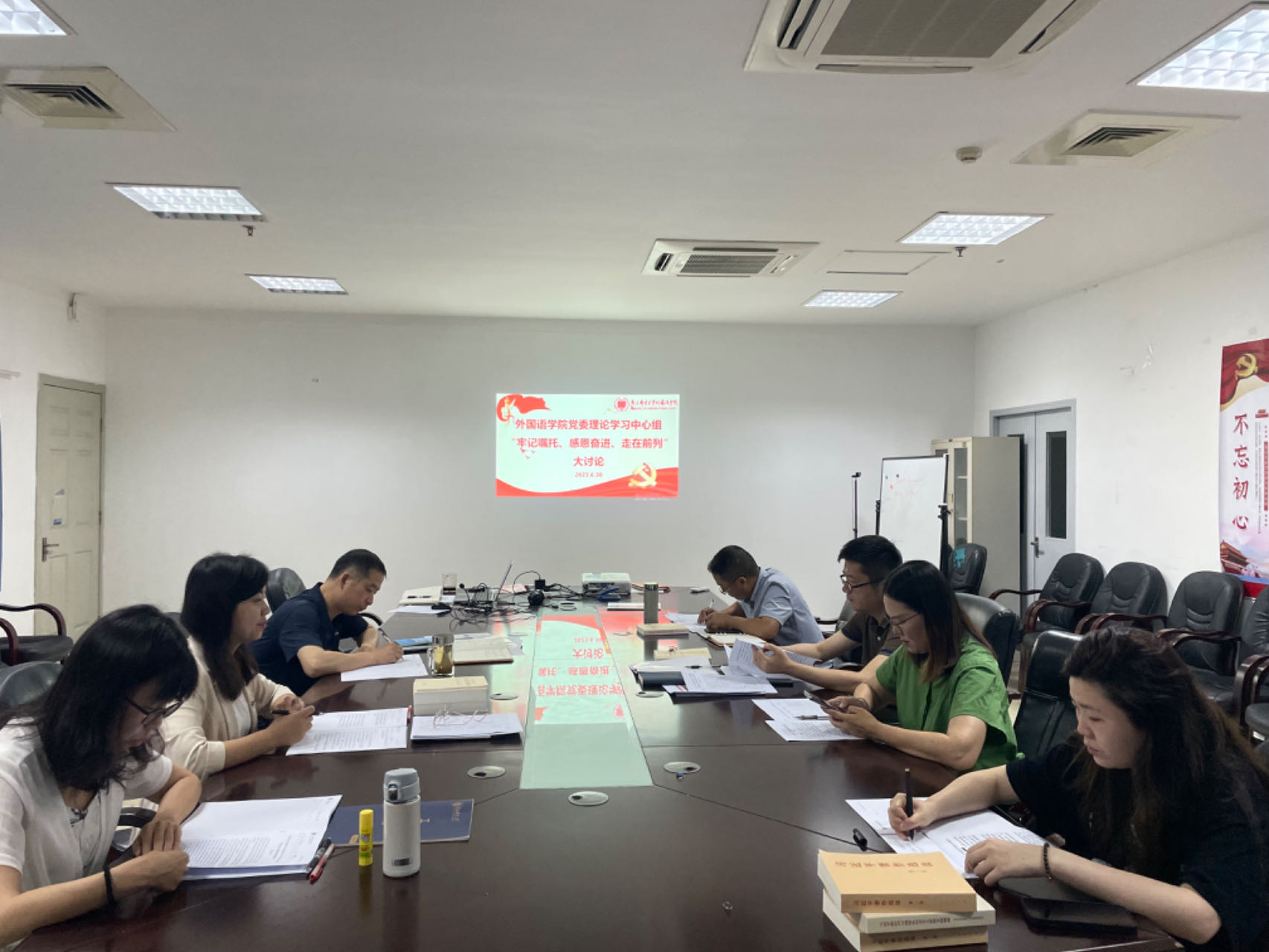 与会人员认真学习了《关于在主题教育中认真组织传达学习习近平总书记在文化传承发展座谈会上重要讲话精神的通知》、《关于认真学习贯彻习近平总书记重要讲话精神进一步落实以学正风重要要求的通知》文件精神。