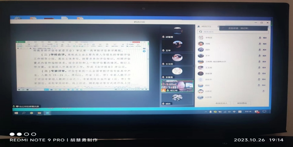 10月26日,英语系召开本科教育教学审核评估专题学习会。会议由英语系系主任胡慧勇主持,英语系全体教师参会。