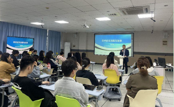 4月3日,ylzzcom永利总站教授袁周敏为师生做了题为《学术论文选题与发表》的专题讲座。讲座由ylzzcom永利总站院长助理洪洁主持,ylzzcom永利总站部分教师和部分研究生、本科生参加了讲座。