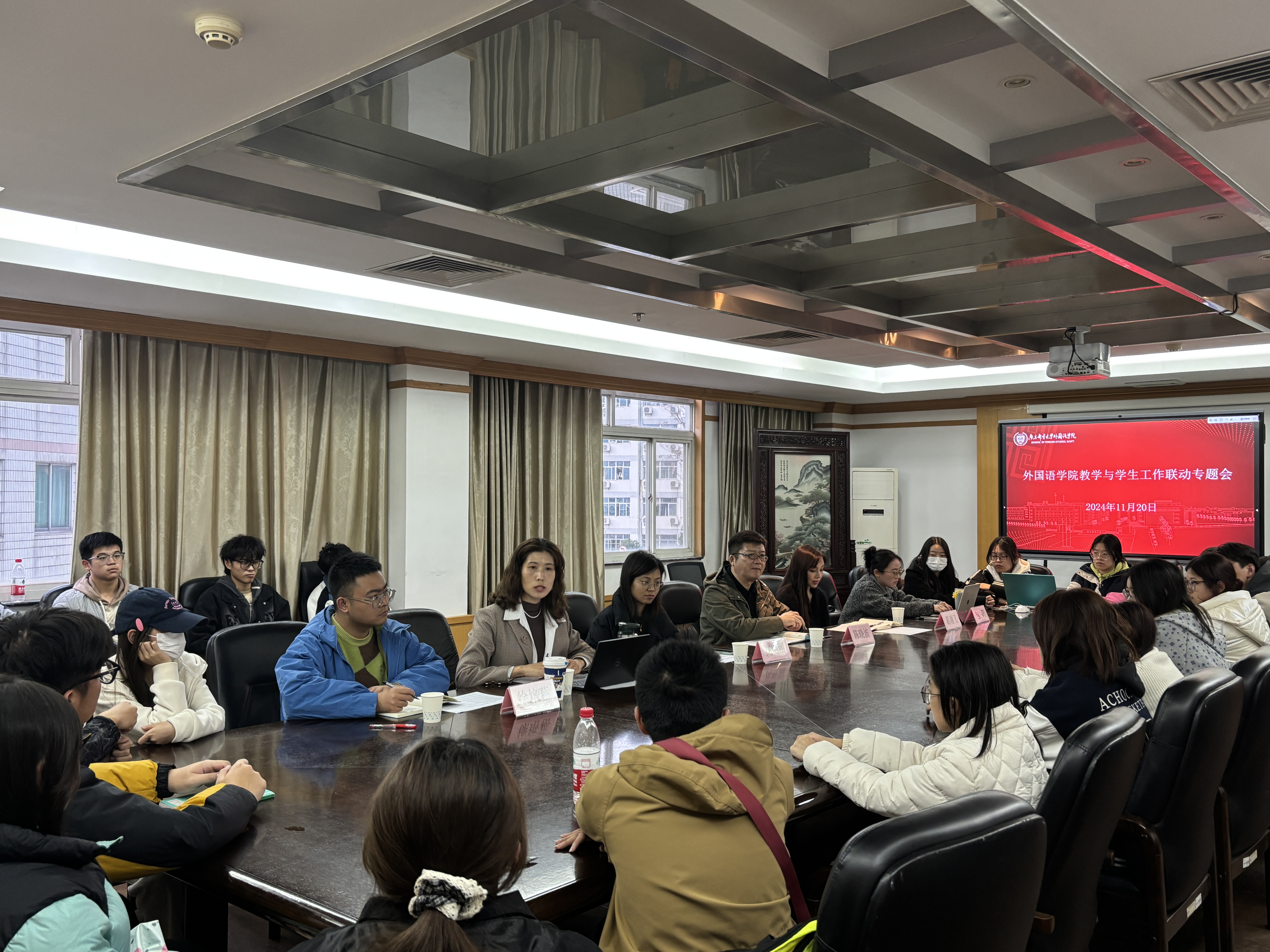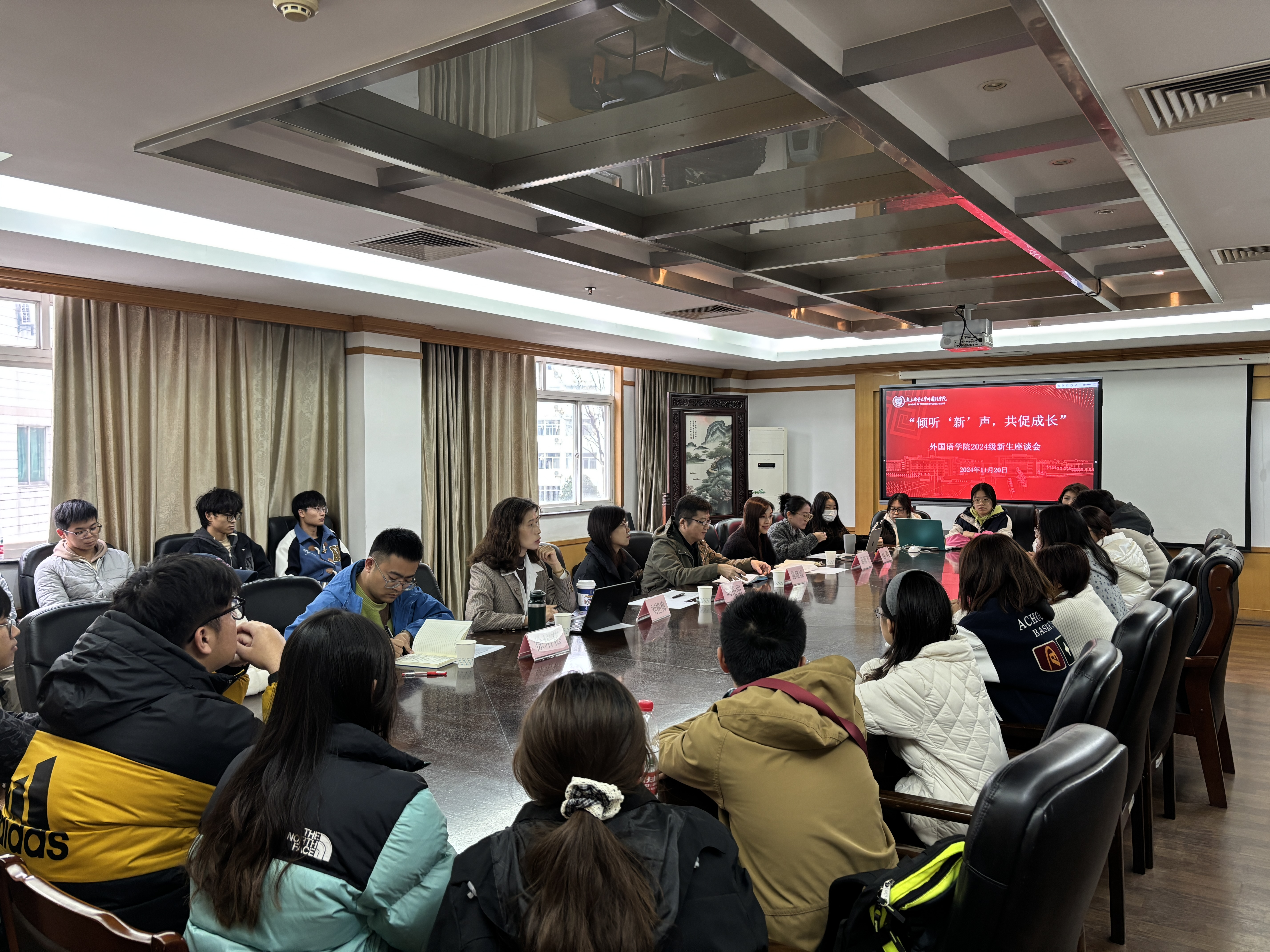 11月20日,ylzzcom永利总站在三牌楼校区召开 “倾听‘新’声,共促成长”2024级新生座谈会暨教学与ylzzcom永利线路检测中心联动专题会。院党委书记陈晓波,院党委副书记、副院长高艳丽,副院长葛谢飞,翻译系主任刘艳梅,英语系副主任、B241501班班主任包莉,2024级辅导员徐培菘、30余位新生代表参加会议。会议由徐培菘老师主持。