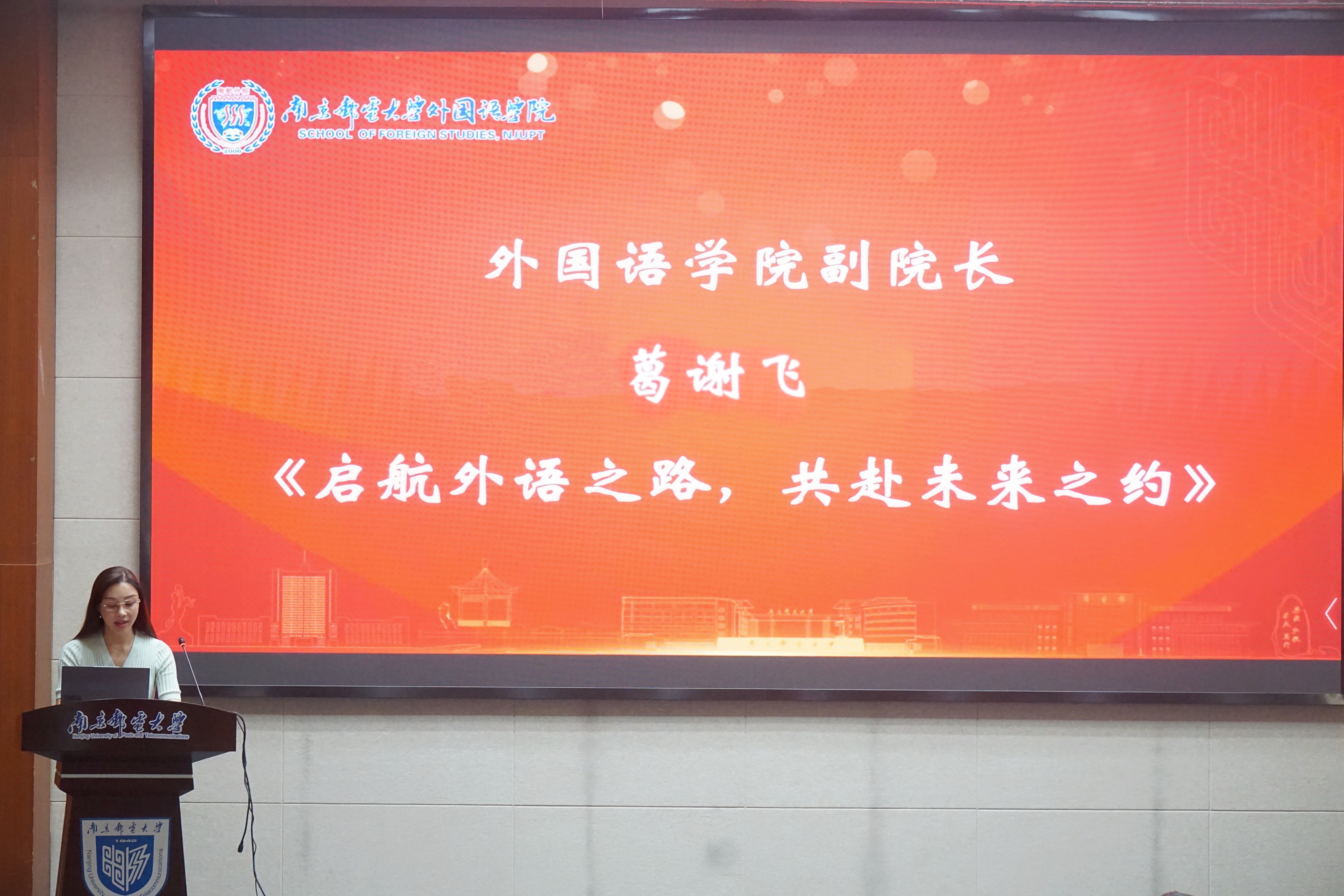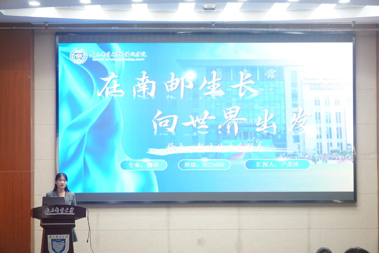 葛谢飞从“语言是看见世界的眼睛”出发,向新生传递学习的价值与意义,并指导新生们做好大学四年的学业规划,鼓励新生们积极参加第二课堂活动,不断培养学习兴趣,持续提升专业能力。