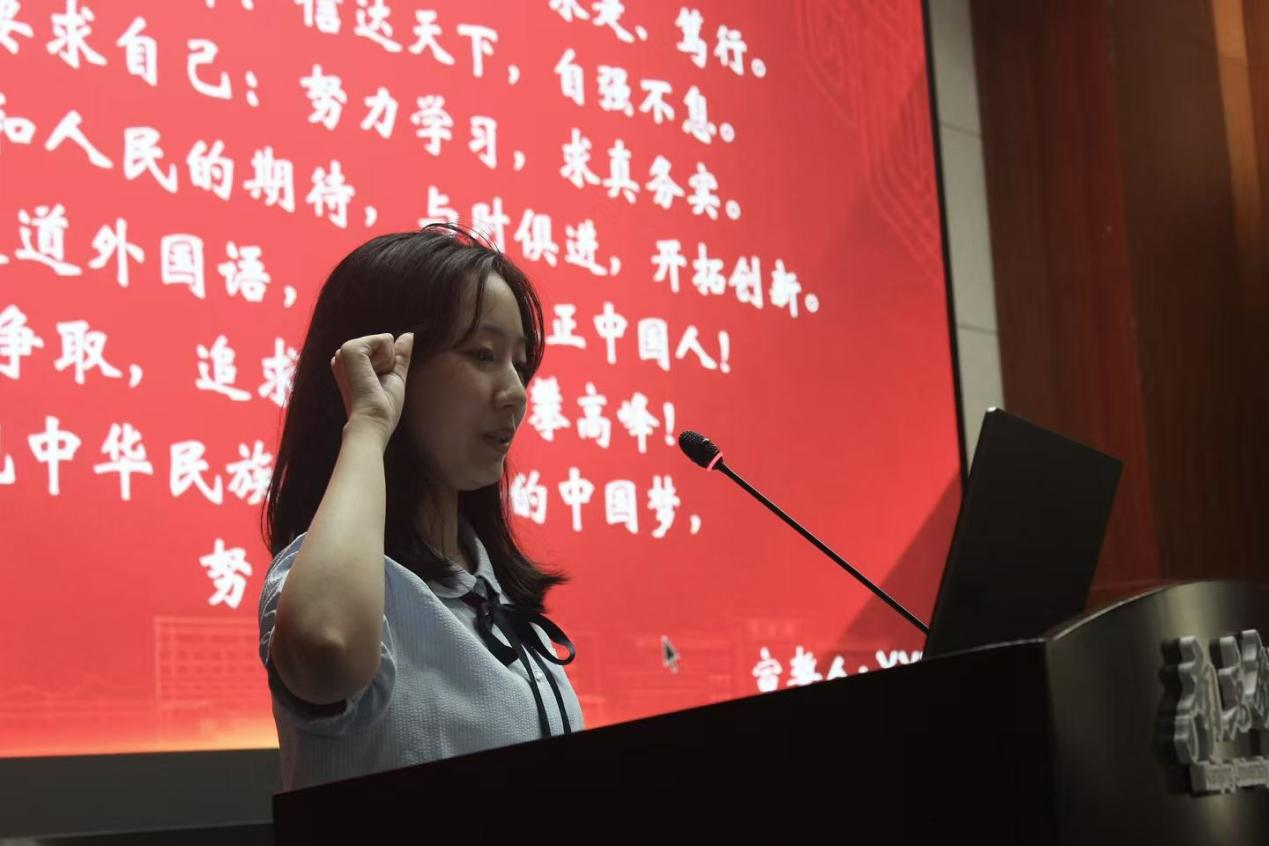 在新生代表陈昭若同学的带领下,全体新生庄严宣誓。