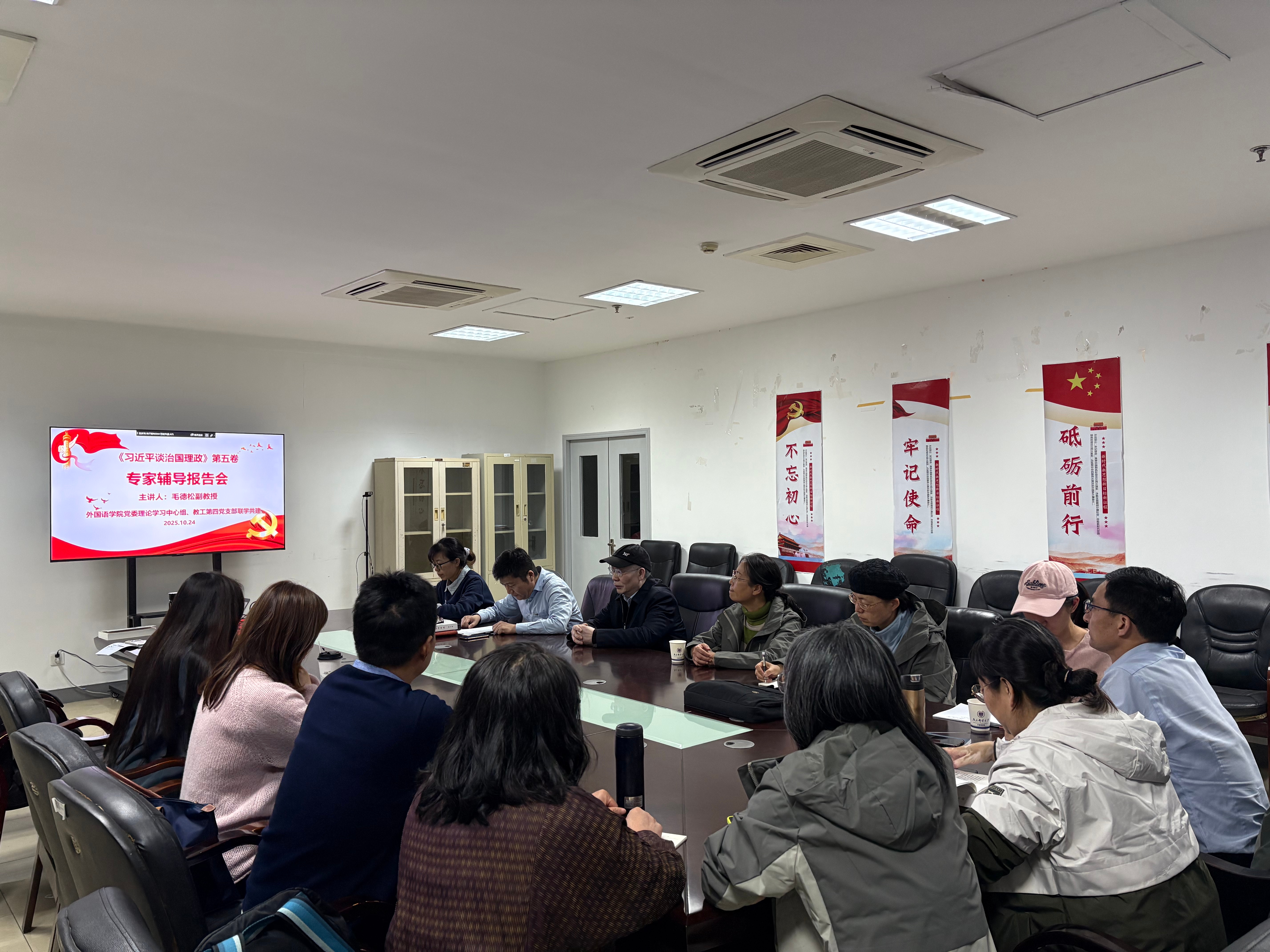 为深入学习贯彻习近平新时代中国特色社会主义思想,深刻领悟党的创新理论最新成果,切实把学习成效转化为推动学院高质量发展的强大动力,2025年10月24日,ylzzcom永利总站党委理论学习中心组与教工第四党支部联合开展《习近平谈治国理政》第五卷专题学习会。会议邀请马克思主义学院原副院长毛德松副教授作专题辅导报告,学院党委理论学习中心组成员、教工第四党支部全体党员参加学习,学院党委书记陈晓波主持会议。